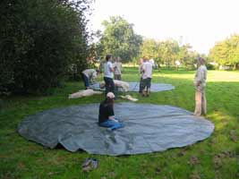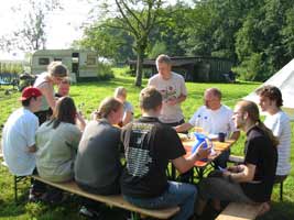 Leiter in Aktion ist bei uns die seit Jahren schon gepflegte Tradition, ein Wochenende lang etwas nur mit der Leiterrunde zu unternehmen. Dabei wird das Programm des Ausfluges, des Kurzhikes oder Sonstigem (welches natürlich pfadfinderisch angelehnt sein sollte und kein reiner Fun-Ausflug sein soll, obwohl wir auch schon einmal im Phantasialand waren...) immer von einem anderen Team vorbereitet und bis unmittelbar vorher vor den anderen geheimgehalten. Dieses Jahr (das bisher erst zweite Mal, daß das Wochenende schriftlich festgehalten wird; nach 1997 in der Lagerecho ist es dieses Jahr 2005 hier auf der Webseite nachzulesen) hatten wir wieder gehörig viel Spaß... Lest selbst, wie wir bis auf wenige Leute uneingeweiht ins Blaue hinein mit dem Fahrrad nach Wachtendonk gefahren sind und uns dann dämmerte, was geschehen sollte, als dort ein großer Anhänger auf unsere Fahrräder wartete und zwei große Paddelboote bereitstanden...