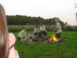 Am Sonntag morgen dann kam Lisa wieder zu uns und brachte das Frühstück. | Wir frühstückten... | ...die Reste des Vorabends wanderten übrigens auf das Lagerfeuer, welches noch einmal angeheizt wurde. |