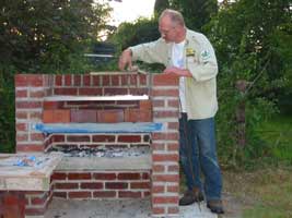 die damals angefangene Waschstelle war fertig (Badewanne) und ein großer Grill