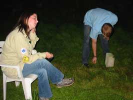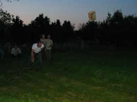 Gregor mit seinem Meisterstück. Laut Daniel ist es der heißeste Grill, den er jemals gesehen hat. | Abends dann kam die Tradition des Steineweitwurfs auf, der zum ersten Mal auf dem Wiesenwochenende aufkam. | Wieder maßen sich alle Teilnehmer an, in verschiedenen Disziplinen die Steine möglichst weit zu werfen, schleudern oder zu stoßen. |