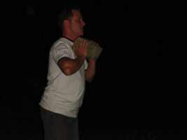 Aber auch Jörg bot ein sehr gutes Bild. Zwischen ihm und Patric entwickelte sich ein Stechen. | Christian beim Schleudern. | Immer weiter ging der Wettkampf. Herbert brachte uns sogar einen Strahler aus Geldern vorbei, damit es weitergehen konnte. |
