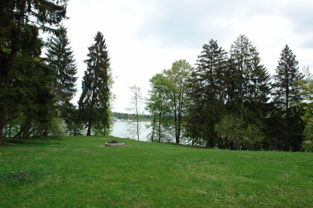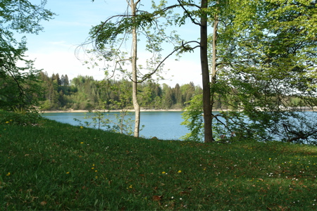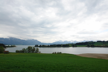 ...die Elemente Wald, Wiesen, Wasser und die (schneebedeckten!) Alpen. |