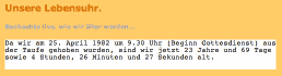 Du möchtest wissen, wie alt unser Stamm ist? Das kannst Du ganz genau haben und beobachten, gehe dazu einfach auf unsere Lebensuhr...