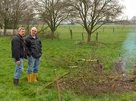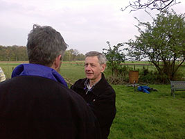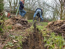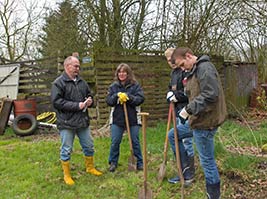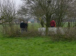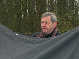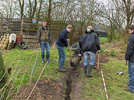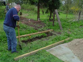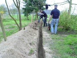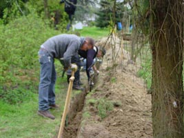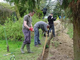 ...aufgebaut. Herbert bewacht seine Jungs, die abdann weiter mußten. Ebenso paßte | er auf, daß seine Kettensäge nur Fachpersonal (Christoph) in die Hand bekam. | Die Übrigen gruben sodann wieder einen kräftig tiefen und langen Graben, der uns |