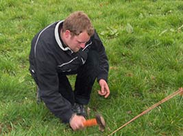 Jetzt war es also wieder soweit und es fand das II. Wiesenwochenende statt. Den Arbeitsplan stellte Gregor auf und in der Leiterrunde vor, und zwar sollte – nachdem die Waschgelegenheit schon lange fertig ist (Fotos auf verlinkten Seiten), auch wenn sie noch nicht überdacht ist und ebenso ein gemauerter Grill das Grundstück erheblich aufwertet – wieder ein langer Graben von Sämisch bis zu unserem Grill gezogen werden, um eine vernünftige elektrische Versorung zu verlegen; damit hätte dann auch das immer noch in den Bäumen hängende Nym-Kabel, von irgendjemanden vor uns verlegt, ausgedient. Der Graben wurde bis zum Nachmittag komplett gegraben, das stabile Erdkabel verlegt, und wieder zugeschüttet. Außerdem hat Kyrill auch bei uns und auf der Wiese so seine Spuren hinterlassen und zwei von den schönen Obstbäumen, die bei LIA 2006 noch so prächtige Äpfel getragen hat, entwurzelt und umgeworfen. Die herumliegenden und abgebrochenen Äste und schließlich der gesamte Baum bis auf die Hauptstämme wurden schließlich komplett verbrannt. Christoph als ausgebildeter THW-Säger hat mit Herberts Stiehl und vorschriftsmäßiger Schutzkleidung sich der Bäume gewidmet und die Äste wurden von Wolle, Huetti und Conny zu einem recht großen Haufen aufgeschichtet, den sich das Feuer auch irgendwann geschnappt und komplett gefressen hat. Die Wiese wurde nur zum Teil gemäht, zudem hat Gregor die Brennesseln bespritzt, um sie einzudämmen.