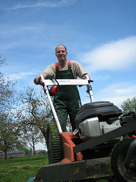 Wie die verlinkten Seiten zeigen, war natürlich nicht zwei Jahre Ruhe auf der Wiese. Auch in der Zwischenzeit haben sich vornehmlich in Gregor und dem Wiesenausschuß regelmäßig fleißige Leute gefunden, die sich immer mal wieder der Wiese gewidmet haben. Und seitdem auch schon lange geklärt ist, daß der Schuppen (oberstes Bild als Einleitung) stehen bleiben darf und das Dach nicht asbesthaltig ist, ist auf der Wiese ständlig Werkzeug und Material vorhanden, teilweise sogar extra für die Wiese angeschafft, wie zum Beispiel unser leistungsfähiger Rasenmäher.