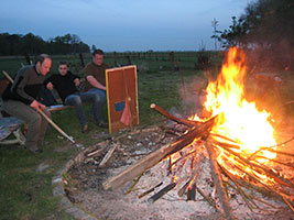 Christoph hat seine vorschriftsmäßige Schutzkleidung bereits abgelegt... | ...das Feuer hat bald alles weg, dann konnte es losgehen... | Der zweite Teil des Abends (undokumentiert) begann. |